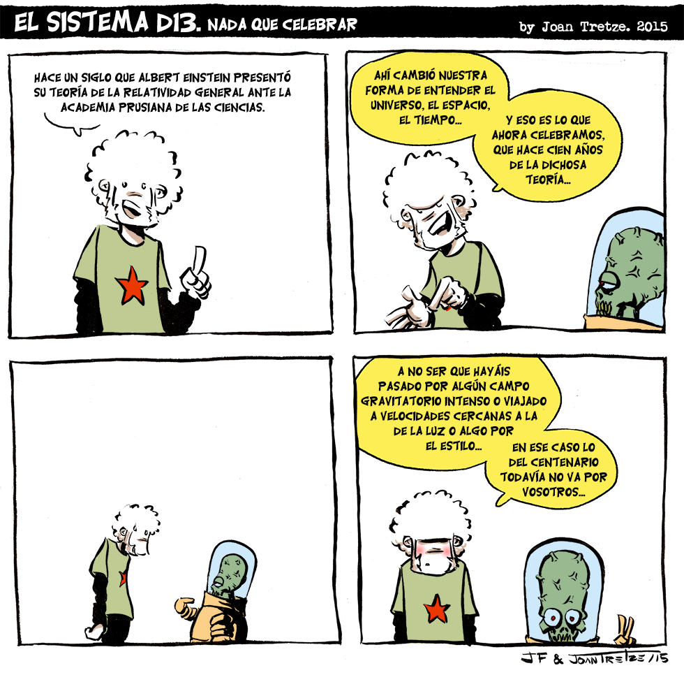 Esta tira además será publicada en la revista de la Real Sociedad Española de Física en un número monográfico dedicado al 100 Aniversario de la Relatividad General.